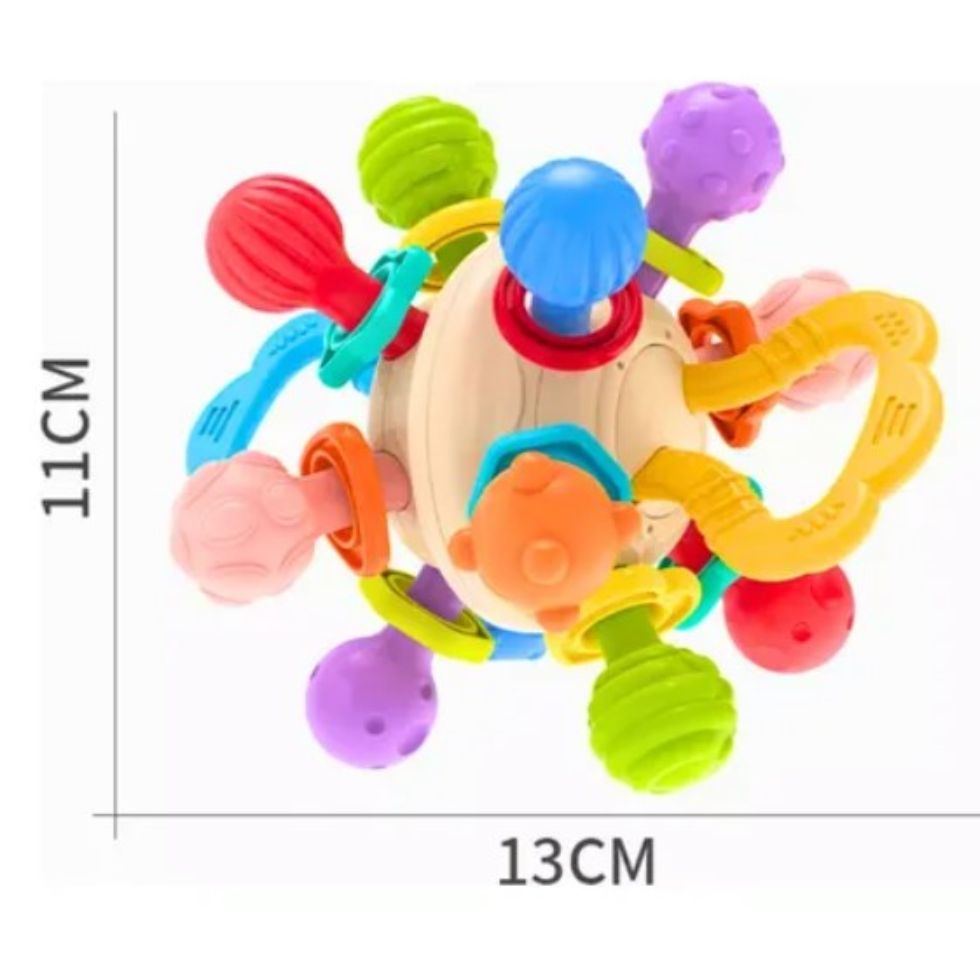 2. Desarrollo sensorial: con tres texturas de dentición distintas, un sonido de traqueteo agradable al sacudirse y 12 puntas de silicona en varios colores, nuestra bola sonajero está diseñada para brindarle a su hijo una gama de experiencias sensoriales estimulantes.
