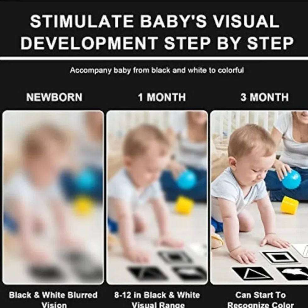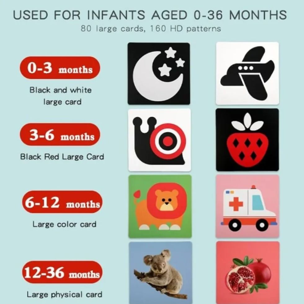 Juguetes seguros para 0-3 meses: todas las tarjetas de bebé de alto contraste están hechas de materiales libres de tóxicos y respetuosos con el medio ambiente. No dañará los ojos de su bebé y es seguro para que el bebé entre en contacto con él.